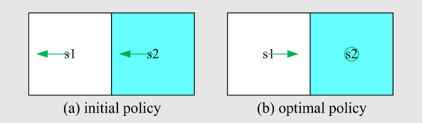 的最大值,改进后的策略是:这个策略经过一次迭代后就是最优的!在编程中,应继续直到满足停止条件。